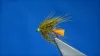 Hook: Ahrex Light Stinger NS122 # 6 Thread: Fl. orange Veevus Tail: Gold Crystal Flash + yellow and orange marabou Body: Yellow Foam Cylinder 5/16” (8 mm)