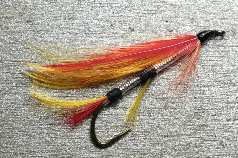 Tail Red hackle barbules + golden pheasant crest
